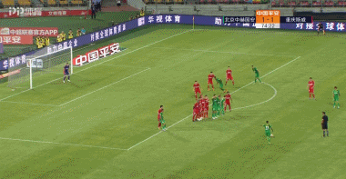 第74分钟,奥古斯托为中赫国安赢得一粒前场任意球。比埃拉主罚球打到人墙身上飞向球门被邓小飞托出横梁。