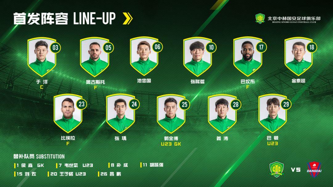 后卫:3-于洋、18-金泰延、24-张瑀、28-姜涛(63’ 15-刘欢)