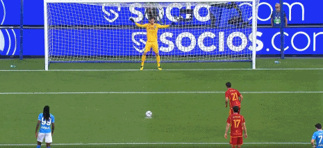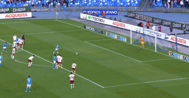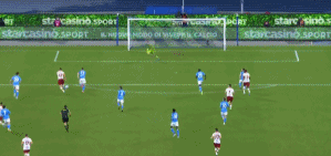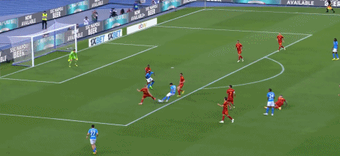 第10分钟,洛萨诺突入禁区被罗热-伊巴涅斯绊倒,主裁判观看VAR后判罚点球,因西涅操刀一蹴而就,那不勒斯1-0领先!