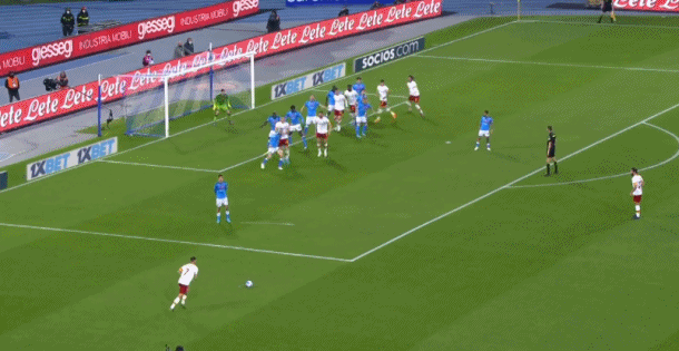 第52分钟,奥斯梅恩传球,波利塔诺直接打飞