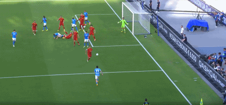 第6分钟,头球接力,佩莱格里尼头槌攻门稍稍高出