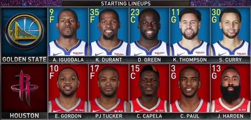 此后,双方以死亡五小对垒:塔克+戈登+哈登+保罗+小里VS追梦+阿杜+伊戈达拉+克莱+库里。