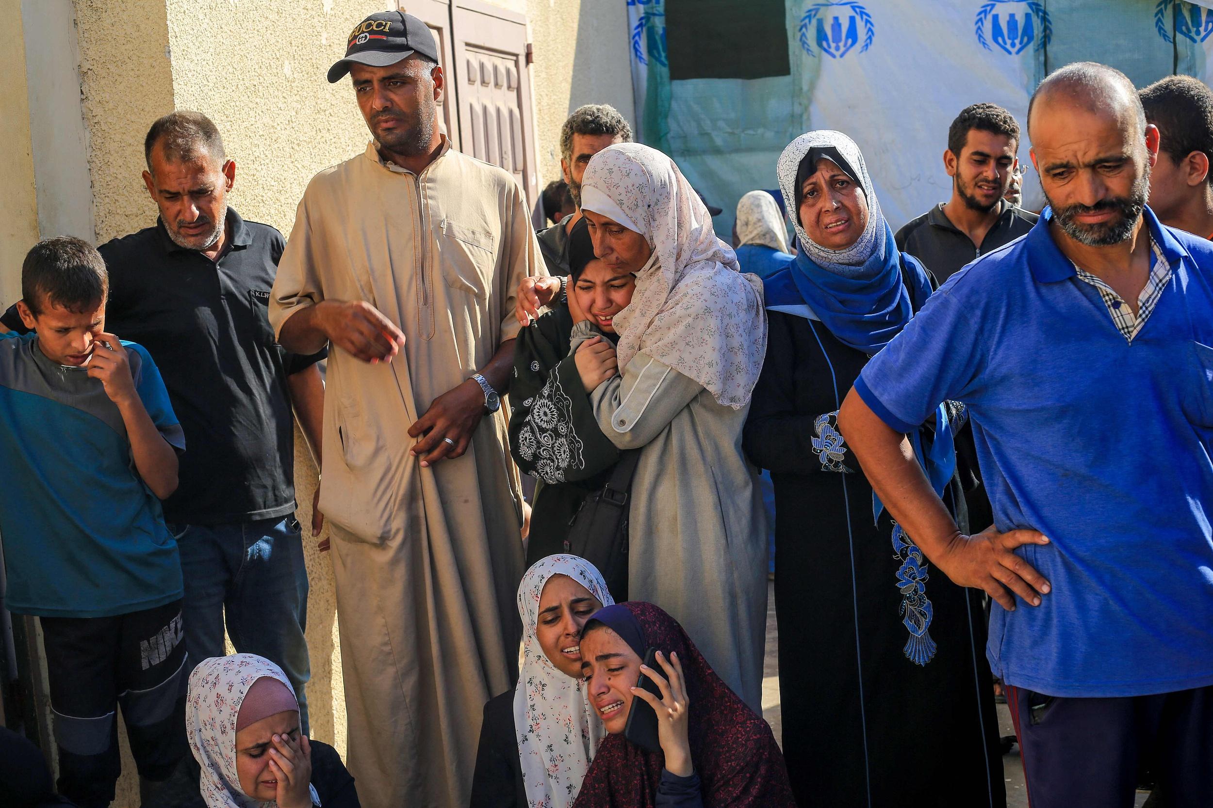 当地时间2024年7月10日,加沙地带,以色列袭击轰炸代尔拜拉赫的医院,巴勒斯坦人为逝去的亲人哀悼。
