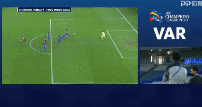 第38分钟,场上出现了戏剧性的一幕,和中超决赛次回合极为相似。神户球员即将形成单刀的情况下杀入禁区,被水原的金泰焕放倒,但主裁第一时间给了张镐翼黄牌,给了神户点球机会。但VAR介入后,主裁到场边观看慢镜回放后,取消点球判罚,给了神户任意球,但罚下了水原后卫金泰焕。