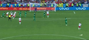 下半场第50分钟,波兰队前场获得位置极佳的定位球机会,莱万多夫斯基的任意球直接攻门被塞内加尔门将飞身扑出。