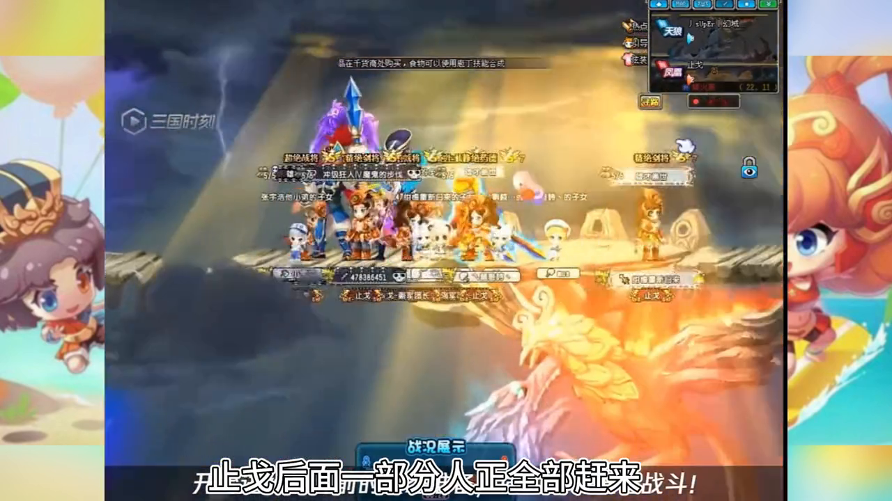 接着贾诩魅惑左边上方贼寇,再控制右边上方贼寇去正中间,就完成了聚怪工作。接下来就是庞统的输出时间了,常规操作。