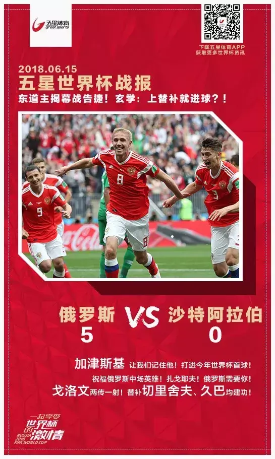 俄罗斯 世界杯揭幕战,东道主 俄罗斯 以5-0的成绩战胜 沙特 ,怎么评价?感谢邀请,俄罗斯是当胜而胜,必然的结果。首先,俄罗斯是东道主,大家都知道主场优势有重要,气势是俄罗斯已经占了大优势;第二,俄罗斯老帅战术安排合理,选人...