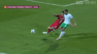 第25分钟,虚惊一场!张琳芃禁区内飞铲沙特球员,裁判经VAR核实未判点球。