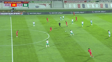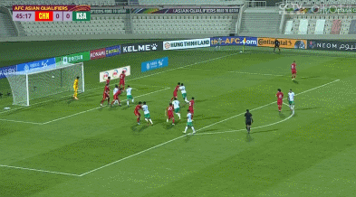 第44分钟,沙特斜长传找到禁区沙赫拉尼,头球攻门高出横梁。