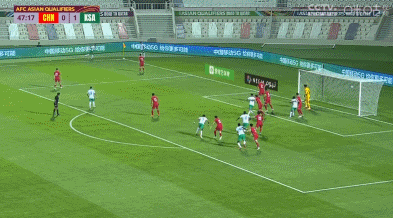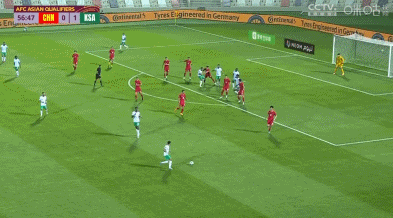 第46分钟,谢赫里角球机会头球破门,国足0-1沙特。