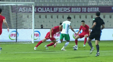 第53分钟,高准翼前场断球后直塞,禁区中路张玉宁连射两脚破门,裁判判罚越位在先。