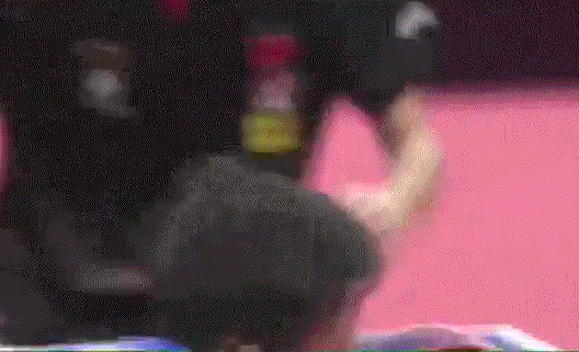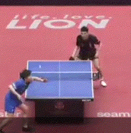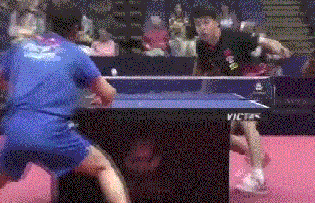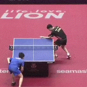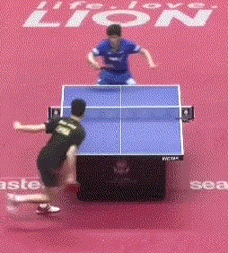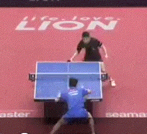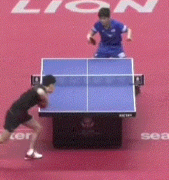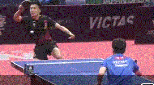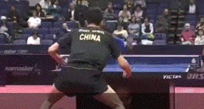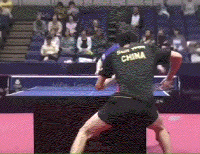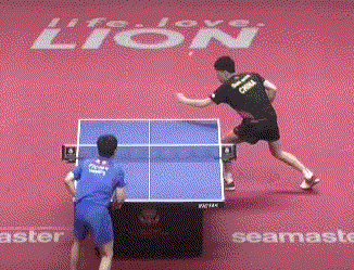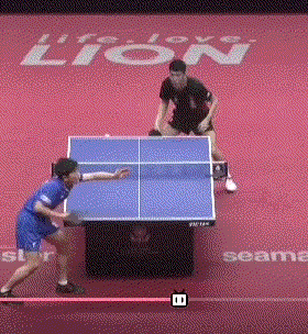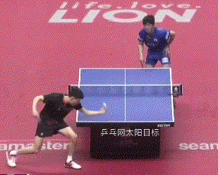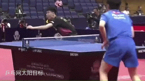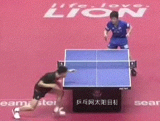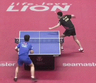孙闻连续两板拉反手后,突然变直线,张本智和应变不及,没能够到球。