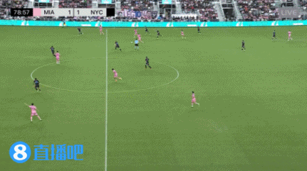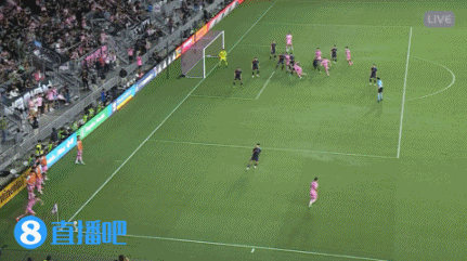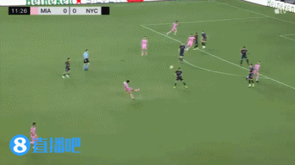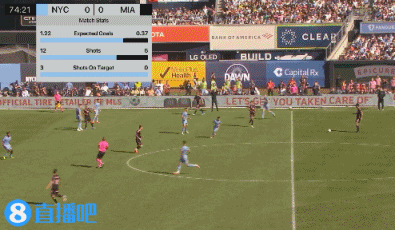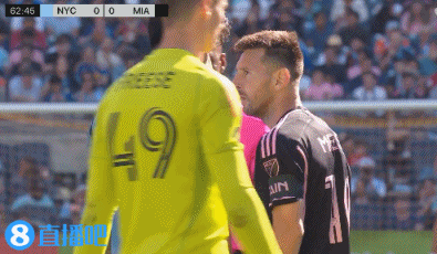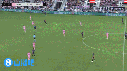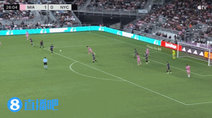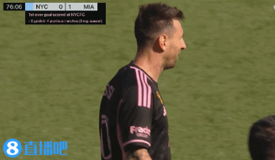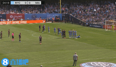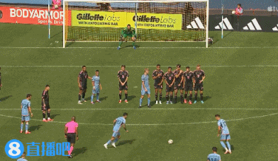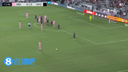 梅西任意球造威胁!第5分钟,纽约城队员手球犯规,迈阿密获得任意球机会,梅西主罚射门稍稍偏出立柱,很有威胁!↓