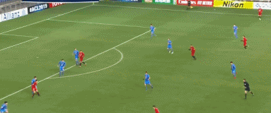 比赛第36分钟,魏震从中后场找身前的艾哈迈多夫,艾哈再给胡尔克,胡尔克带球往中路走,但被金太焕绊倒。任意球位置距球门有些距离,胡尔克直接起脚大力爆射,但皮球被吴承训抱住。