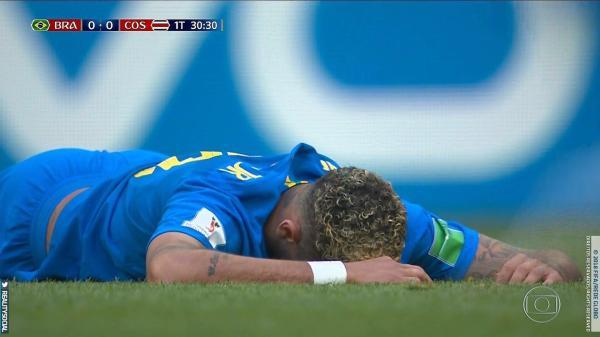 这显然是哥斯达黎加人的“烟雾弹”。比赛开始10多分钟,内马尔就痛苦地倒在了球场上。