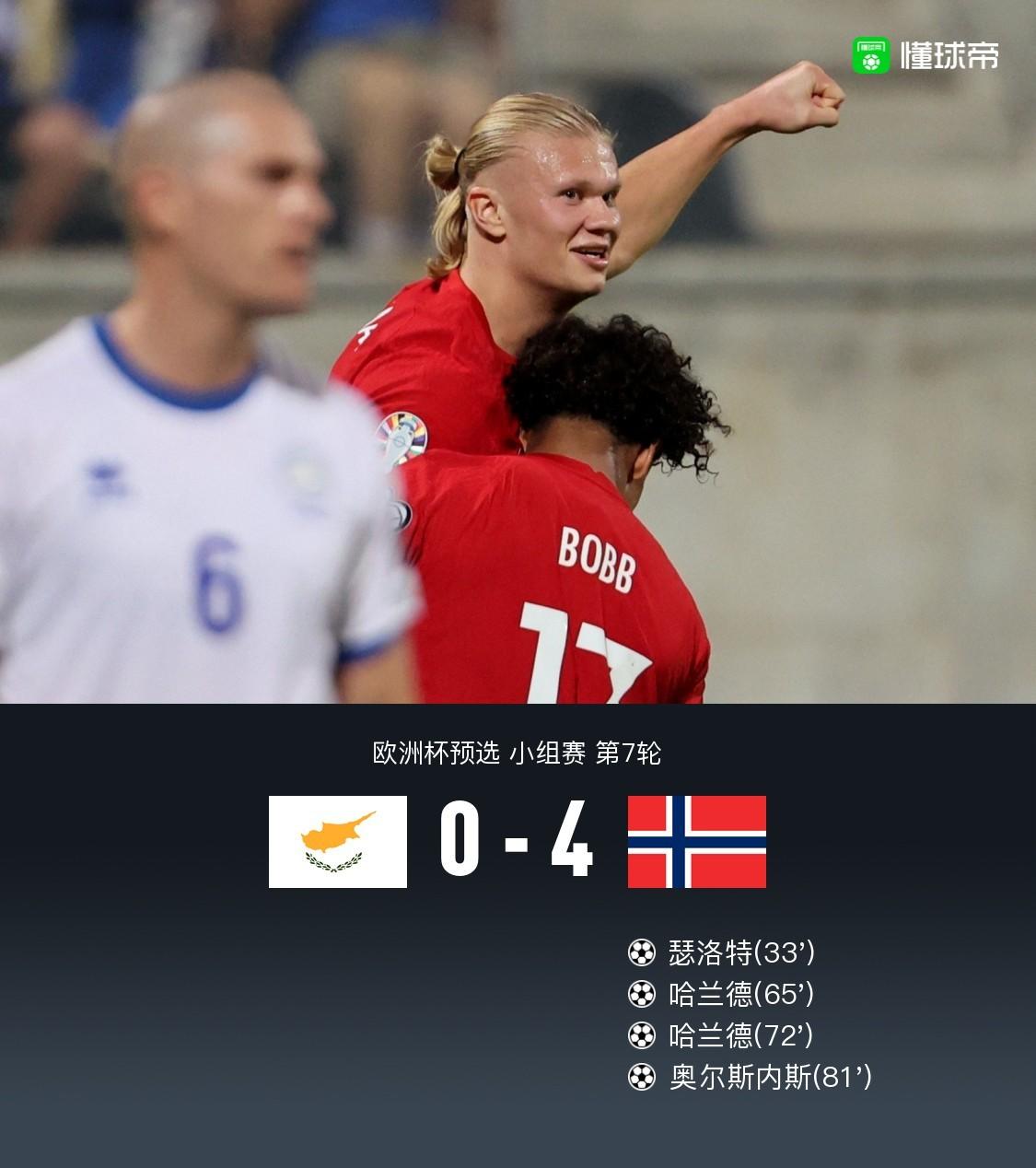 第72分钟,梅开二度!努萨助攻哈兰德头球破门,塞浦路斯0-3挪威