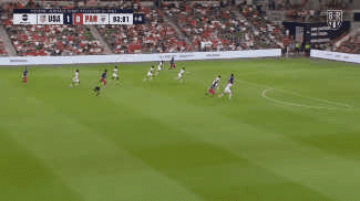 4. 此后双方均无建树,直到商庭补时阶段,蒂尔曼做球,哈吉赖特左路低频球传中,佩皮推射入网,二比零,美国队战胜巴拿马,波切蒂诺执教首秀收获开门红。