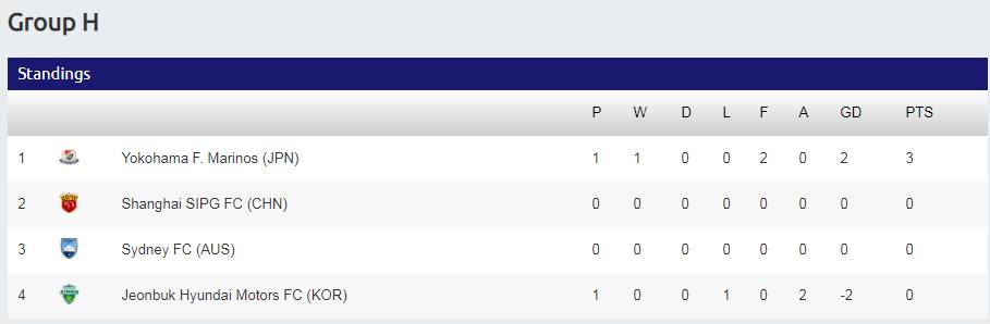 全北和横滨是各自联赛的卫冕冠军,加上上港和悉尼FC,组成了死亡之组。全北与横滨2014赛季的亚冠曾经同组,全北主场曾经3-0战胜对手。