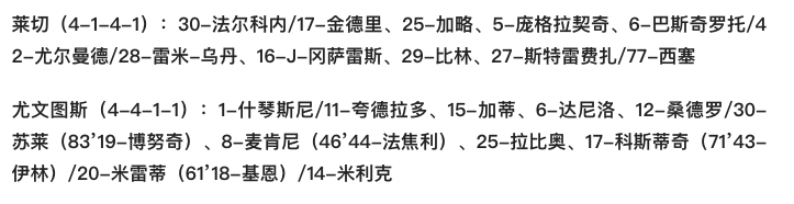 不久后比赛结束,最终尤文图斯客场1-0战胜莱切。