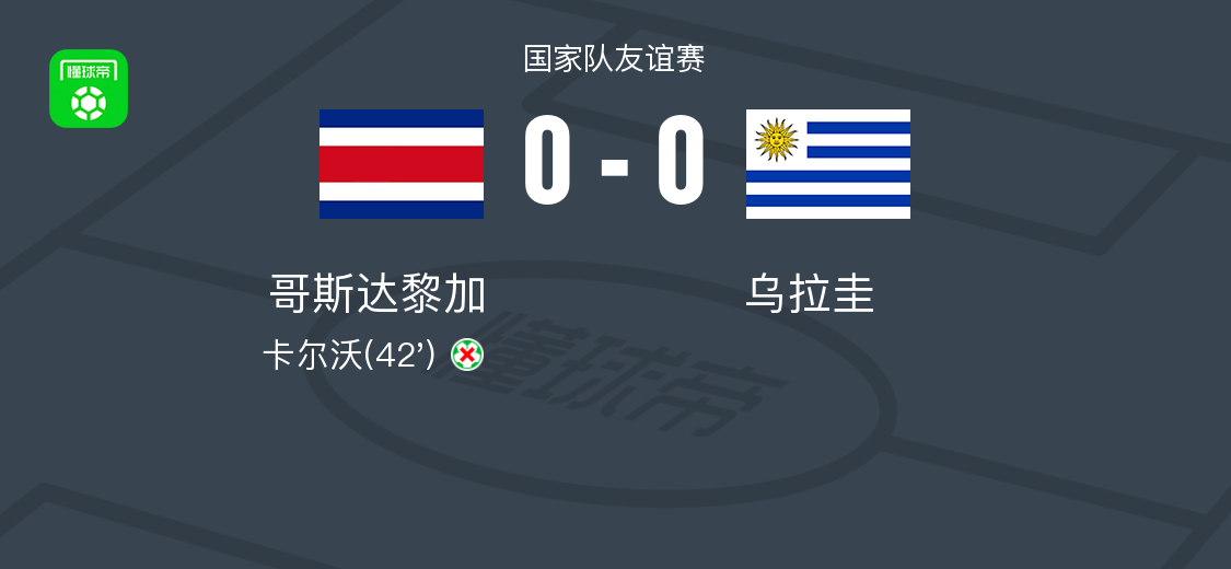 北京时间6月1日国家队友谊赛,哥斯达黎加主场对阵乌拉圭。最终比分哥斯达黎加 0-0 乌拉圭。