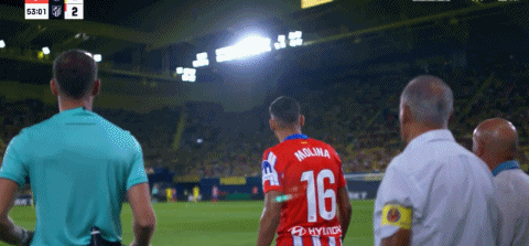 第53分钟,马竞换人调整,莫利纳替补上场,雷尼尔多被换下