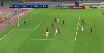鹿岛鹿角球员上演精彩的脚后跟破门,意味着上港必须在下半场打入两球,才能将比赛带入加时……