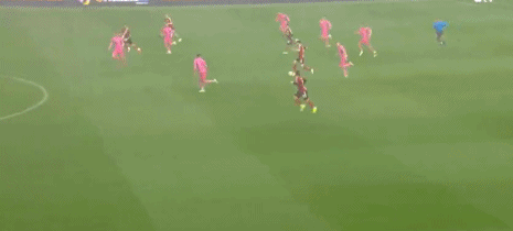 第71分钟,苏亚雷斯传中,坎帕纳头球攻门偏出