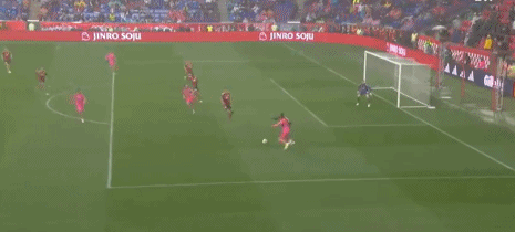 第27分钟,苏亚雷斯左脚兜射,皮球偏出球门