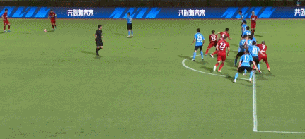 第9分钟,大连人获得角球机会,林良铭禁区胸部停到皮球,但是太突然没有准备好,皮球直接飞出底线,开场阶段大连人掌握进攻主动。