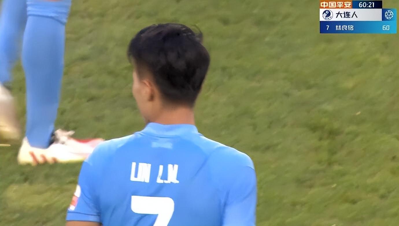 第59分钟,林良铭在禁区左侧抽射打在对方腿上折射进网,大连人扳平1-1。