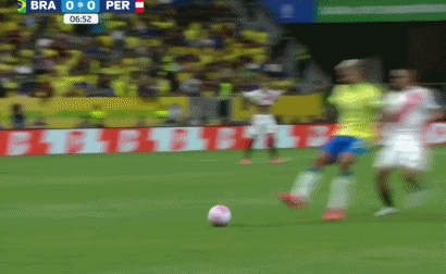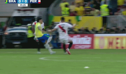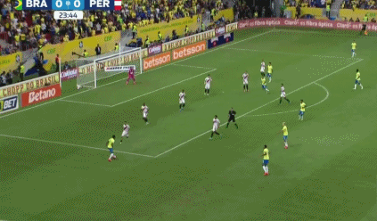 第24分钟,秘鲁解围不力,拉菲尼亚迎球抽射击中横梁