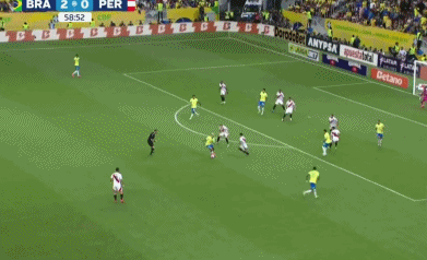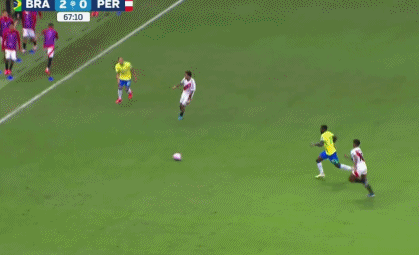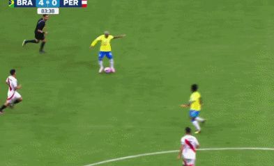 第76分钟,路易斯-恩里克接到伊戈尔-热苏斯分球后带到禁区弧顶,左脚兜射打门得手,巴西迅速将比分扩大至4-0!