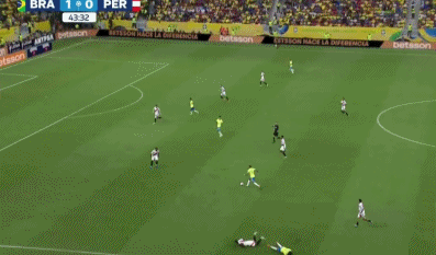 第12分钟,秘鲁队后场长传给到禁区内,弗洛雷斯单刀打门得手,但因越位在先,进球无效。第24分钟,巴西前场连续传递渗透对手防线给到禁区内,拉菲尼亚禁区左路抽射打门,皮球击中横梁弹出底线。