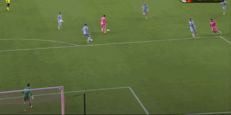 第6分钟,阿尔巴在前场左侧低平球横传,弧顶处无人防守的梅西不停球直接抽射,门将古赞飞身将球扑出。1分钟后,迈阿密国际开出战术角球,戈麦斯在左侧45度传中,皮球滑门而过。第8分钟,梅西将右侧角球开到弧顶附近,无人防守的阿尔巴左脚凌空抽射,可惜打高。