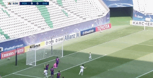 落后一球的珀斯光荣积极进攻,队长卡斯特罗表现活跃,两队基本形成均势,在中场展开拉锯战。第38分钟,申花打出反击,于汉超拿球后踩单车晃过对方球员,面对门将小角度破门,申花2:0领先结束上半场。
