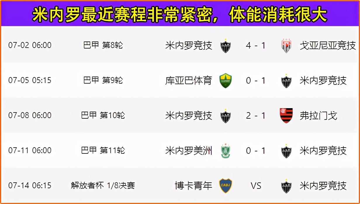 要知道米内罗可是要在14天内打5场比赛,而且有3个客场,体能消耗特别大、备战时间也不够。