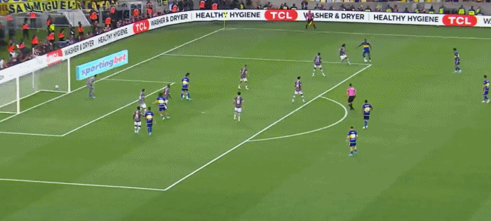 第73分钟,一支穿云箭,阿德文库拉左脚突施冷箭破门,博卡1-1