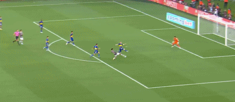 第99分钟,肯尼迪抽射破门,弗鲁米嫩塞再次反超比分2-1