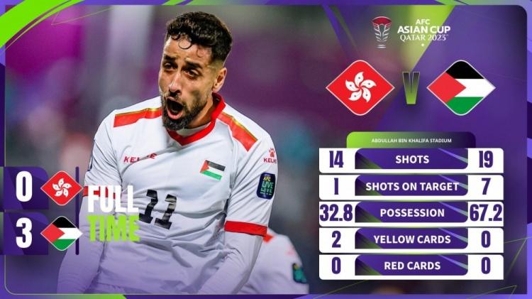 直播吧1月24日讯 北京时间23;00,亚洲杯C组末轮,中国香港vs巴勒斯坦。上半场达巴格为巴勒斯坦首开纪录,下半场昆巴尔、马哈茂德再下两城,埃弗顿失点。最终中国香港0-3不敌巴勒斯坦,小组垫底出局,巴勒斯坦小组第三晋级。