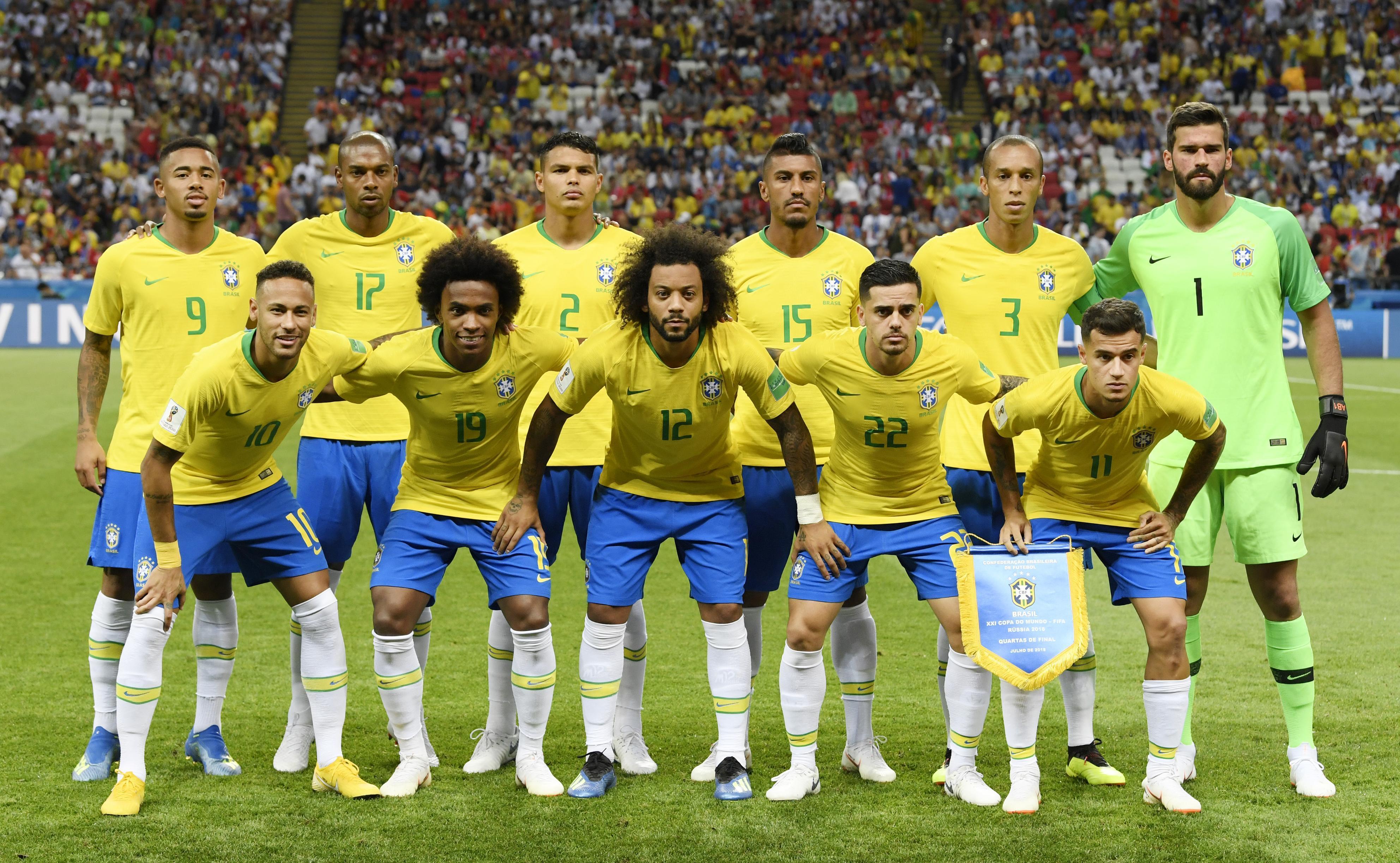 后卫:2号-阿尔维斯(巴塞罗那)、23号-麦孔(罗马)、6号-马塞洛(皇家马德里)、14号-马克斯维尔(巴黎圣日耳曼)、3号-蒂亚戈席尔瓦(巴黎圣日耳曼)、4号-大卫路易斯(切尔西)、13号-丹特(拜仁慕尼黑)、15号-恩里克(那不勒斯)