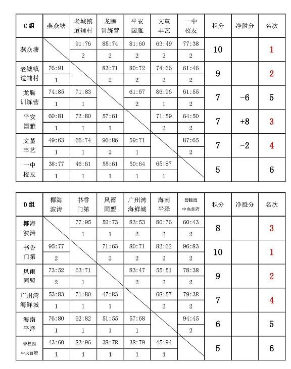 D组方面,椰海波涛、书香门第、风雨同盟、广州湾海鲜城携手晋级,海南平泽、碧桂园中央首府出局。