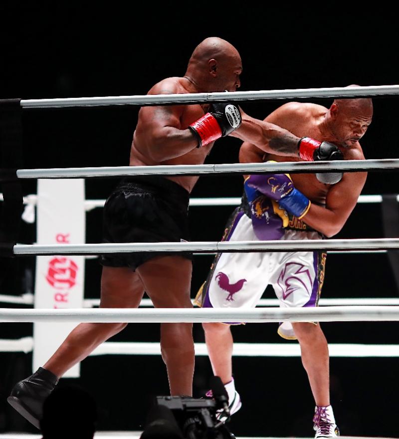 当胡子花白的泰森穿着标志性的黑色短裤,打出一记及具威胁性的下勾拳时,付费才能观看直播的拳迷们都疯狂了,一切都好像回到了30年前,那个曾经属于台上两位年龄加起来超过百岁拳手的黄金时代。