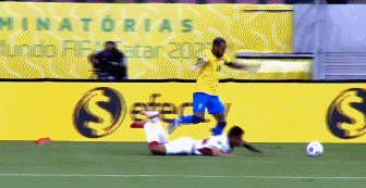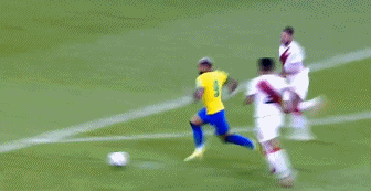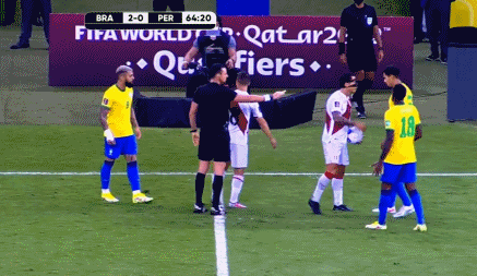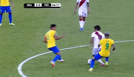 第44分钟,卡塞米罗后场与约顿对脚时抬脚过高,吃到黄牌。上半场比赛结束,巴西队凭借里贝罗的进球和内马尔的传射,2-0领先秘鲁。
