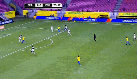 第76分钟,路易斯-恩里克接到伊戈尔-热苏斯分球后带到禁区弧顶,左脚兜射打门得手,巴西迅速将比分扩大至4-0!
