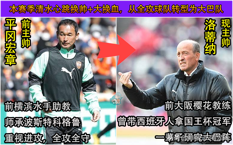 清水赛季初表现极差,原因是大换血加上战术风格180度的大转变(从全攻全守转型为大巴)。