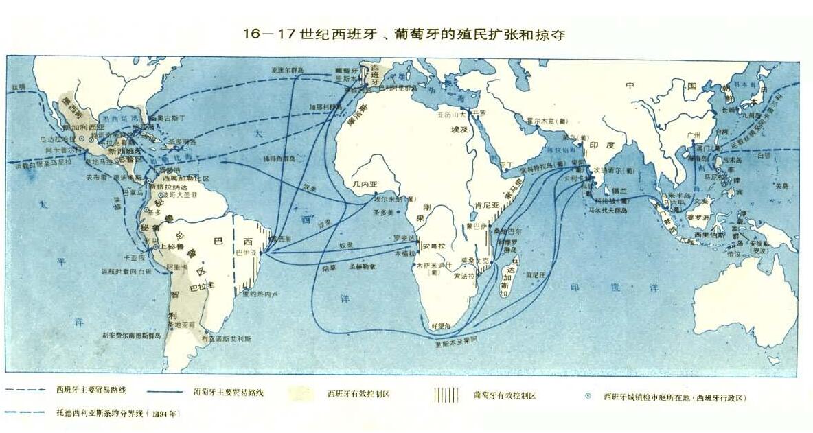 ▲16-17世纪西班牙、葡萄牙的殖民扩张和掠夺