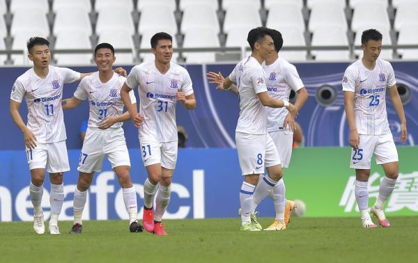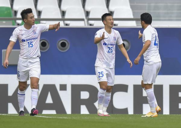 11月18日,在卡塔尔首都多哈进行的2020赛季亚冠联赛东亚区小组赛F组第一轮比赛中,中超上海申花队以2比1战胜澳超珀斯光荣队。新华社发(尼库 摄)