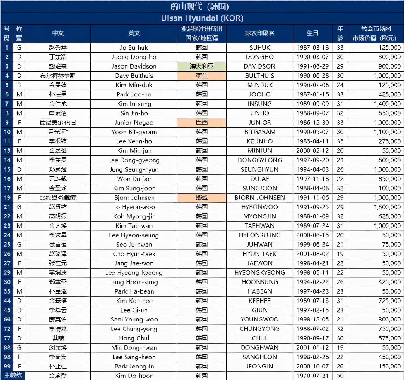 蔚山现代外援后卫Davidson在2018-19赛季在珀斯光荣有过效力经历,因此蔚山现代对珀斯光荣非常了解。