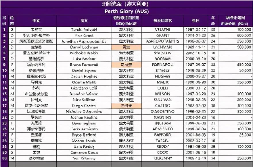 2019-2020赛季澳超联赛已经在今年8月底结束。珀斯光荣常规赛26场比赛10胜7平9负,打进43球丢36球,排名第6位。季后赛以下克上1-0淘汰惠灵顿凤凰,在半决赛0-2不敌悉尼FC,连续第二年被最终冠军悉尼FC击败。