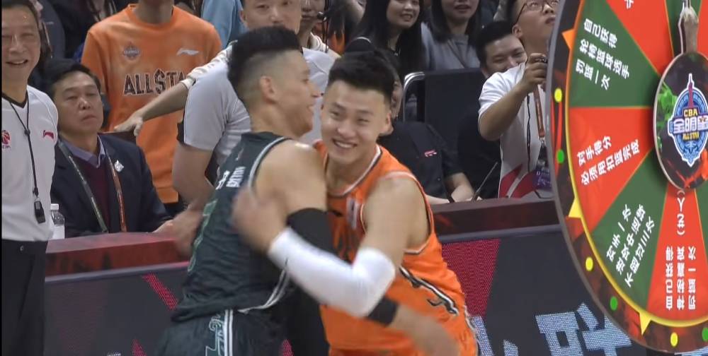 林书豪和赵睿对飙三分,两人皆有斩获!最后20秒,林书豪突破上篮得手,赵睿则是用扣篮(算3分)回应,两人战成9-9,而这分数翻倍加到两人所在的球队(18分),南区以59-47领先北区。